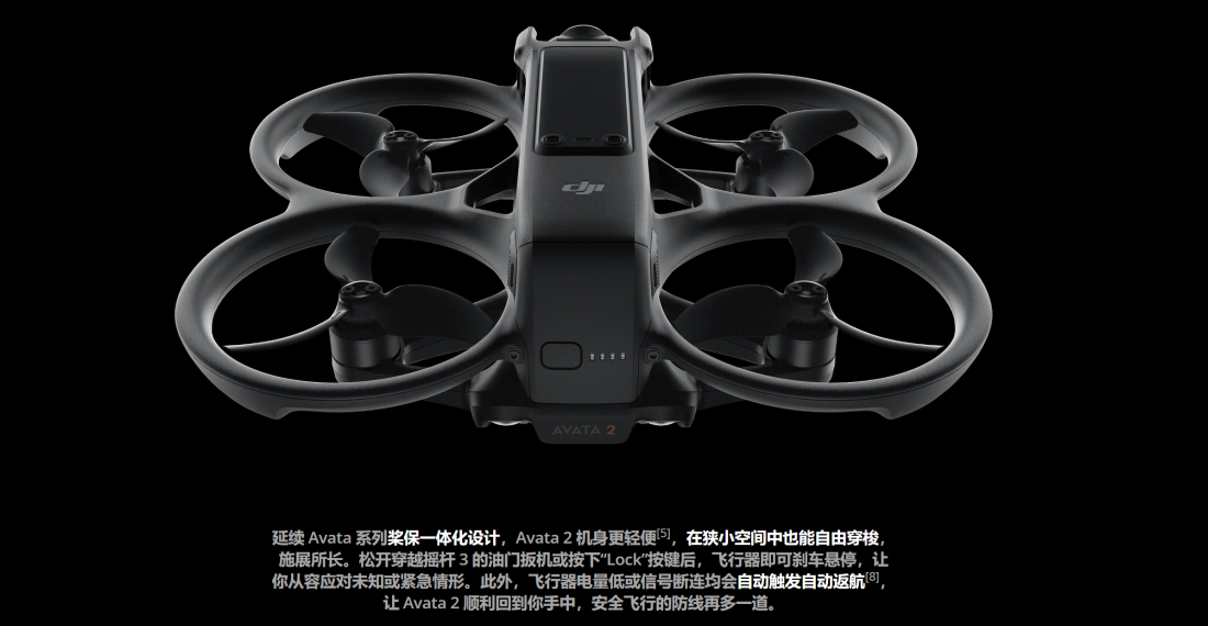 o 视觉定位:垂I Avata 2 是大疆 2024 年推出的沉浸式 FPV 穿越机,主打4K/60fps 10-bit、O4 图传、体感操控与一键花式飞行,适合新手快速上手 FPV 与低空创意拍摄。